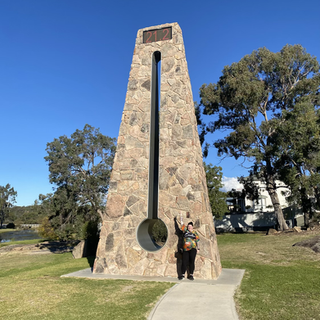 We swung by the park in the middle of town to take a picture with the big thermometer and look at the cute ducks that were swimming in the creek on the way back to our accomodation. It’s a nice spot and worth a look!